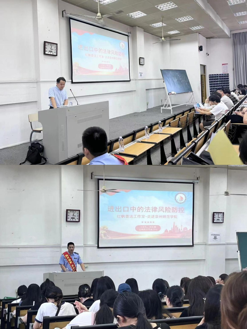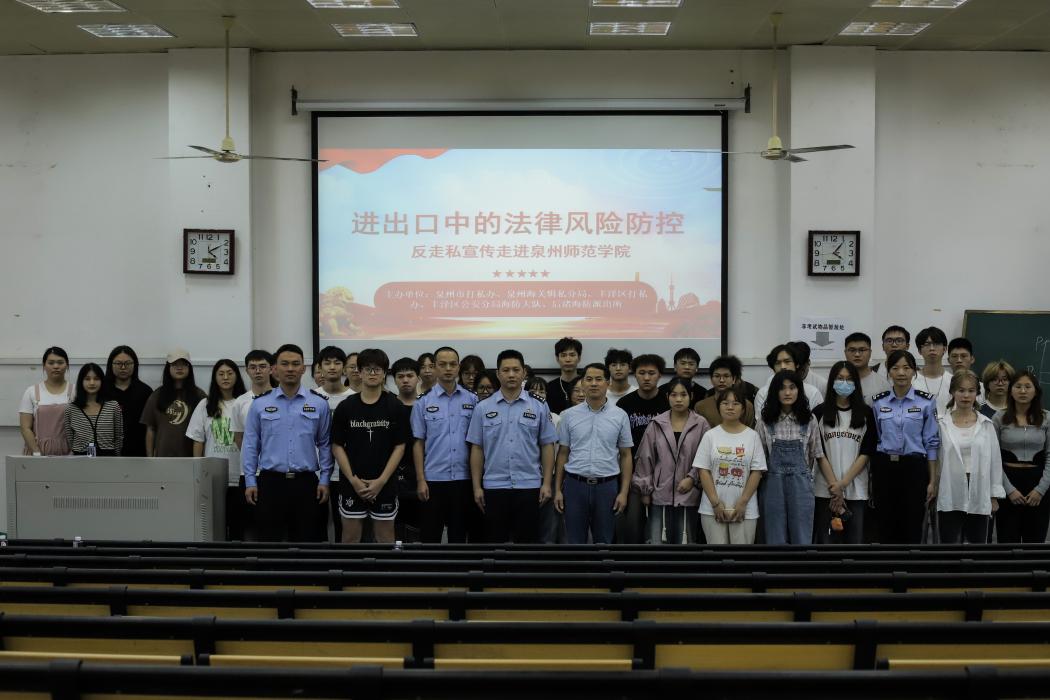 为扎实开展2023年党风廉政建设宣传教育月“一院一特色”----清廉金融文化进校园”系列活动,提高经管类学生对进出口商务活动法律风险的防控意识,陈守仁商学院于112日在文科楼举办以“进出口中的法律风险防控”为主题的法制讲座。本次讲座由泉州海关缉私分局、丰泽打私办、丰泽公安分局、后渚海防派出所和陈守仁商学院联合举办,泉州海关缉私分局一科副科长邱水源主讲,商学院党委副书记曾文超主持。
