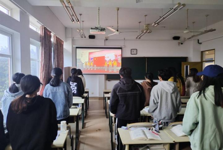 为深入学习宣传宪法,不断增强同学们的宪法意识和法治观念,在2023年12月4日第十个国家宪法,陈守仁商学院组织60余名学生代表在教室共同收看“宪法晨读”网络直播,并进行同步跟读。