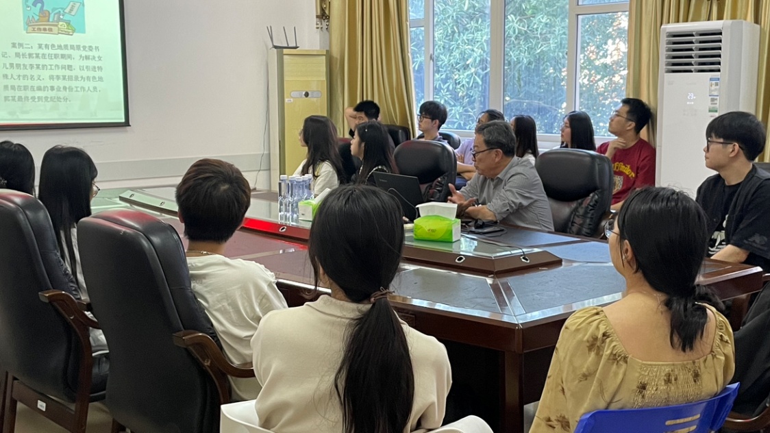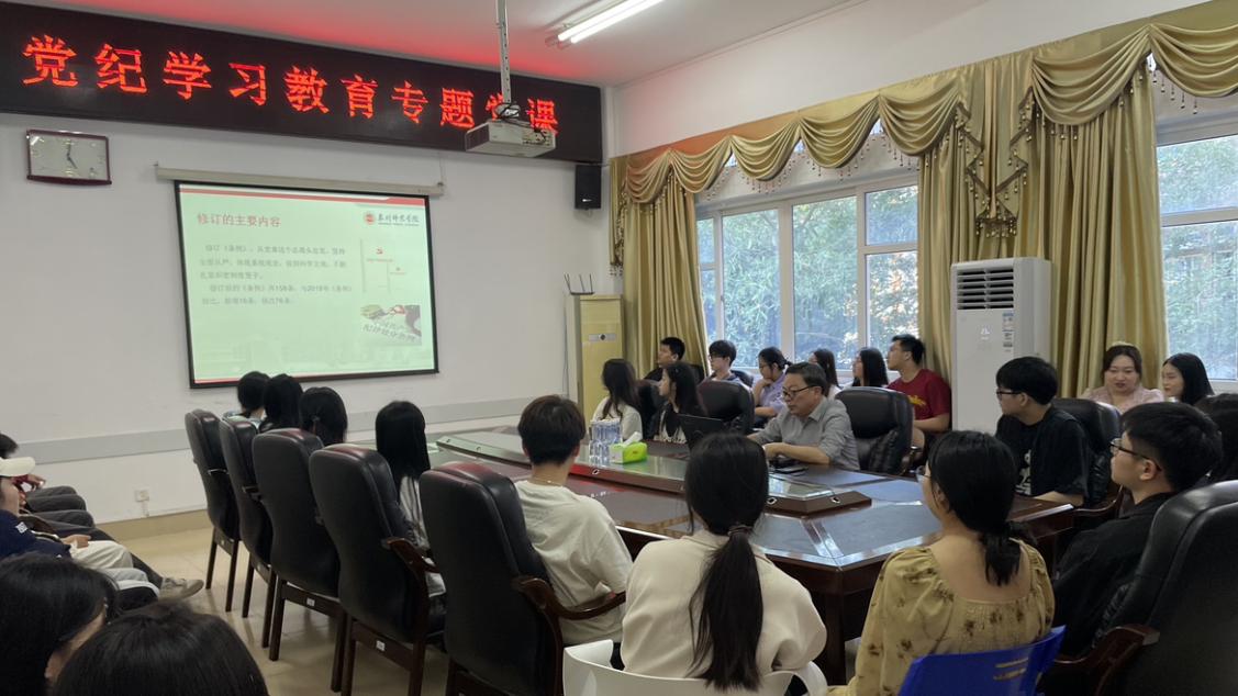 为深入学习贯彻习近平总书记关于党的自我革命重要论述精神,扎实开展党纪学习教育,517日下午,学院党委书记胡凌松为毕业班学生党员、学生第二支部党员上题为《学纪 知纪 明纪 守纪》专题党课。