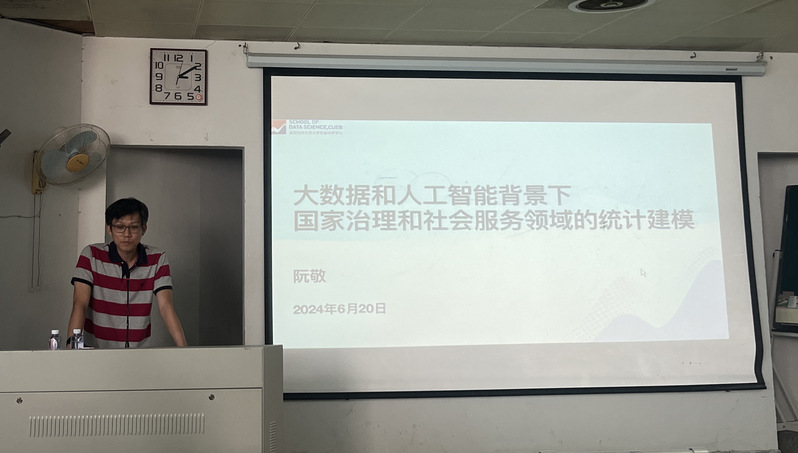 2024年6月20日,陈守仁商学院在文科楼举办“守仁商道”学术讲座,邀请首都经济贸易大学发展规划处处长、学科建设办公室主任阮敬教授莅临学院作题为“大数据和人工智能背景下的统计建模”的学术讲座。副院长颜双波教授作嘉宾介绍并致欢迎辞,学院部分老师和学生参加此次讲座。