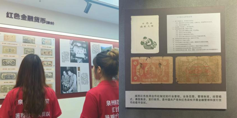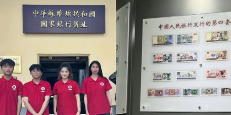 在中华苏维埃共和国国家银行旧址,实践队了解了国家银行的演变历程,感受红色金融的发展过程。中华苏维埃共和国国家银行旧址,不仅承载着革命时期的金融智慧,也见证了中国共产党早期建设金融体系的生动实践。在调研过程中,队员们了解了“扁担银行”对党和国家的重要意义,感叹红军之路的艰辛和先辈们坚持不懈的意志。时代不断进步,但爱国之心亘古永恒,红色基因始终留存,开拓进取的斗争精神历久弥新。
