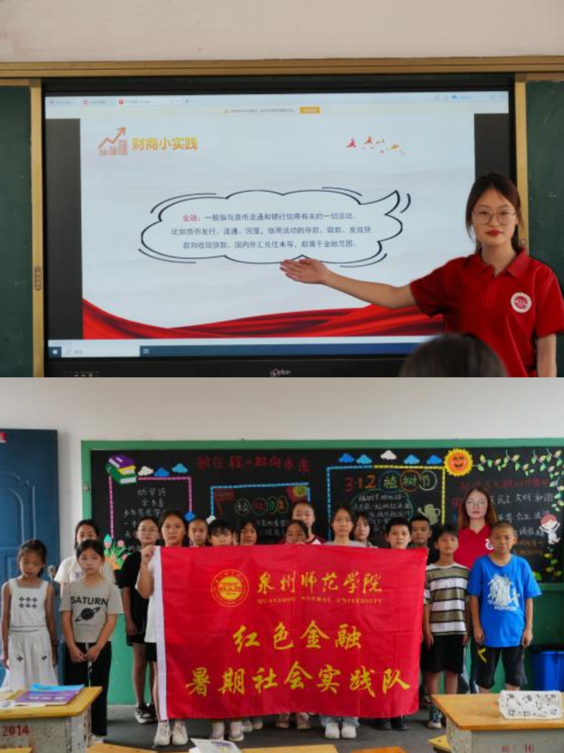 实践队带着汲取到的理论知识和实践经验,前往南平市顺昌县,携手埔上小学开设红色金融课程。在课堂上,队员通过讲述故事和观看教育片《红色金融路》,介绍土地革命时期的苏区货币、抗日战争时期的边区货币、解放战争时期的解放区货币、中华人民共和国成立前至现在的人民币,向小学生普及红色金融史,感悟红色金融事业成长的筚路蓝缕,引导孩子们深刻认识党的集中统一领导是金融工作战胜各种困难、取得辉煌成就的决胜法宝。