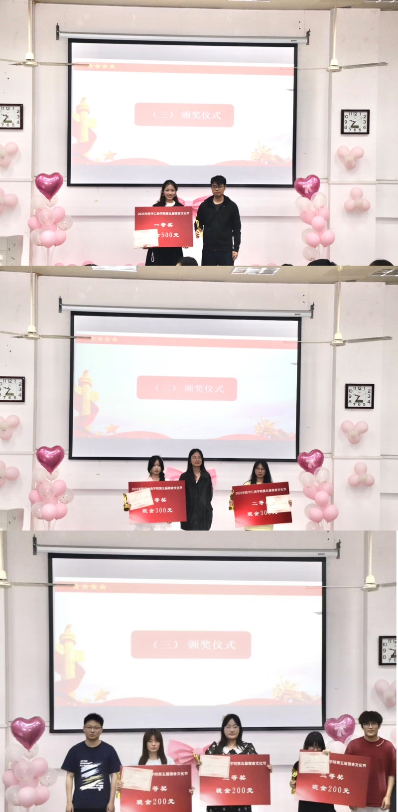 激烈角逐后,宿舍装扮大赛成绩揭晓。C区11栋204宿舍凭借出色的设计与布置荣获最美宿舍一等奖;C区12栋107宿舍和C区12栋109宿舍表现优异,获得最美宿舍二等奖;C区10栋113宿舍、C区5栋504宿舍和C区10栋318宿舍获得最美宿舍三等奖。知识竞赛方面,C区12栋109宿舍凭借扎实的知识积累和敏捷的反应荣获一等奖;C区11栋204宿舍获得二等奖;C区12栋107宿舍获得三等奖;C区10栋113宿舍、C区5栋409宿舍和C区10栋318宿舍荣获优秀奖。