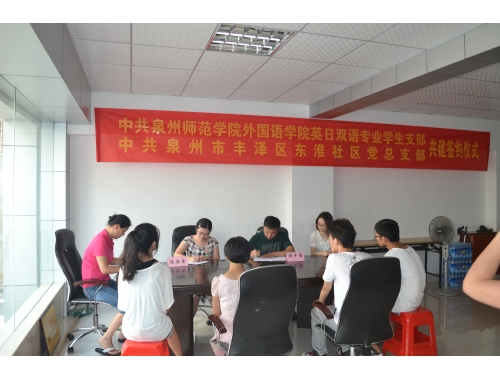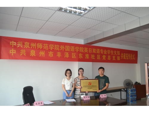 7月3日,外国语学院英日双语专业学生党支部与丰泽区东淮社区签订支部共建协议。