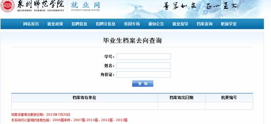 大泉州地区毕业生的档案问题:晋江、南安的同学要亲自拿就业协议书、调档函来泉州师院就业指导中心(白宫)一楼就业指导室办理。除晋江、南安以外的泉州其它地区,泉州市教育局已经和泉州市教育人才中心协调好了,会来得及,请同学于下周一与泉州教育人才中心联系,0595-22785162。另外,泉州教育人才服务中心刚刚搬到东海。