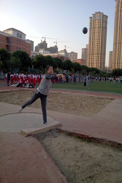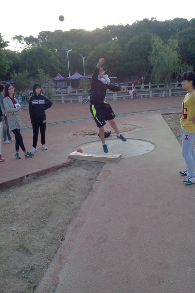 本报讯(记者 王雨丰)随着校运动会的即将到来,我院学生运动员也进行了积极的专项训练。操场上一片火热。其中,实心球铅球训练场地尤为吸引,运动员单手托球,紧贴颈部,抛球时,两腿用力蹬伸。铅球被远远抛出,赢得了围观学生的阵阵喝彩。