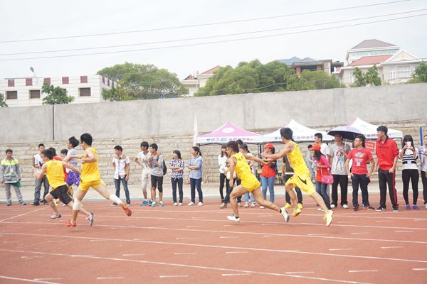 运动员们做完赛前热身,各就各位。发令枪响时,第一棒运动员迅速起跑,以矫健的步伐冲向前方,与第二棒迅速交接。赛场周围此起彼伏的呐喊声加油声为苏东雄增添了动力。第三棒与第四棒交接时虽配合得不是非常顺利,但这一失误并没有影响到他的发挥,他拼命追赶,拉开与身后对手的距离,最终还是拿下了第五名的好成绩。