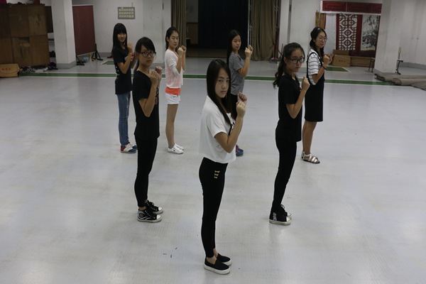 广场舞的同学在辛苦的训练 (李美锋 摄)