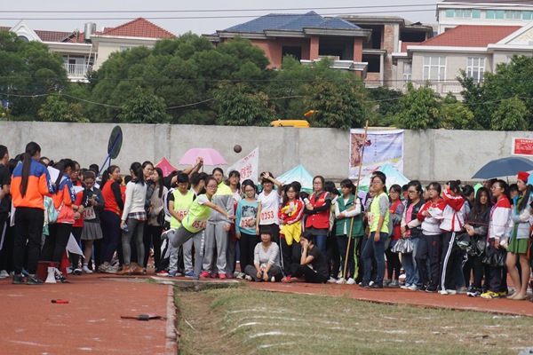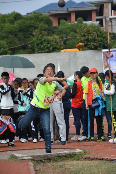 我院王雪苗掷铅球(黄贇斌 摄)