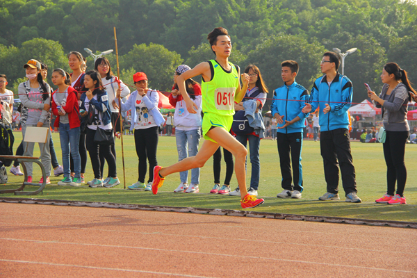 赛前,我院参赛选手积极热身,进行了充分的准备活动。比赛开始,曾鑫、张宏伟、柯鸿祺、张钊铭四人努力赶超,尽显飒爽英姿。其中,张钊铭身披绿色“战衣”,在第一个50米弯道时已占据了领先位置,可是其他选手的实力也旗鼓相当。一圈过后又将他超越,在600米弯道时,他的体力有所下降,但他异常冷静,迅速作出调整,尽量保持呼吸平稳。在最后的100米冲刺阶段,他拼尽全力,赶超三人展现了惊人的爆发力,最终取得第六名的佳绩。全场爆发出一阵欢呼喝彩声。