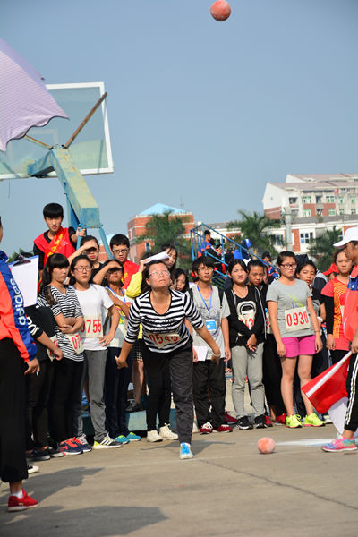 我院卓林诗雨投掷实心球现场(黄贇斌 摄)