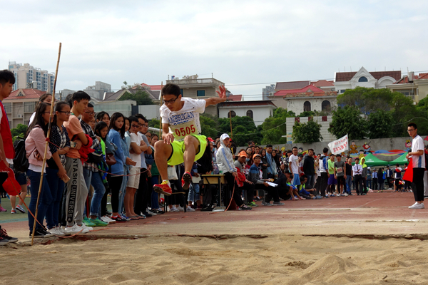 本报讯 (记者 景建丰 实习记者 郑雅云 涂金益)11月3日下午,学生男子甲组三级跳远决赛在操场如期举行。参加此次比赛的是14级数字媒体技术专业的何开渺。他最终取得决赛第七名。