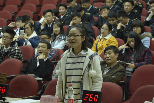 此次比赛的参赛者分为专业组与非专业组。其中,非专业组为非航海类专业学院学生参加。经过初赛的选拔,教育科学学院14级应用心理学专业钱诗怡代表教科学院在全校40位参赛者中脱颖而出进入决赛。她在与其他五位对手的博弈中稳定发挥,在必答题和抢答题环节拿到较高分数,但在风险题部分发挥较为保守,最后钱诗怡取得了决赛三等奖。
