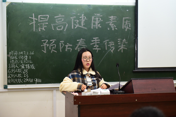 本报讯 (记者 高林林)为了进一步加强校园安全管理,确保师生的健康安全,了解如何预防春季传染病以及所采取的措施。2月26日,教科学院开展了以“提高健康素质,预防春季传染”为主题的班会活动。