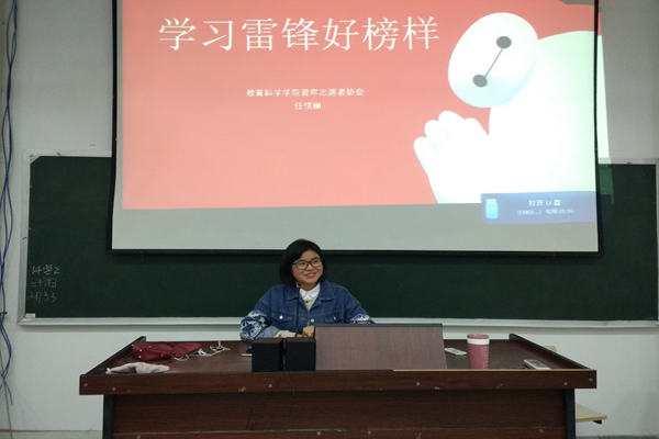活动开始任情丽介绍了雷锋的个人经历、先进事迹及“雷锋精神”的内涵;其次在屏幕上展示了教科学院志愿者积极参与各种志愿服务活动的照片;观看的影片中,年过九十的吴孟超医生一生都在为病人默默奉献,打工者刘玲工资微薄仍然不忘资助贫困儿童,大巴司机吴斌时刻心系他人安全牺牲自我……不论职业高低,不论富贵穷苦,将爱心一点点传递,他们都是雷锋精神的延续者、时代的楷模。志愿者们目不转睛地观看影片,影片中每一个普通的生活情景都触动着大家内心最柔软的部分,“雷锋精神”一直在他们心中发光发热;最后,在任情丽引领下志愿者纷纷发表自己的志愿感言。
