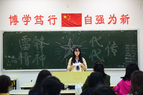本报讯 (记者 曾子玥)为了将雷锋精神融入当代大学生的生活,提高大学生的思想素质,加深对雷锋精神的认识和理解。3月5日晚,教科学院开展了以“学习雷锋精神,树立校园新风”为主题的班会活动。