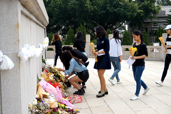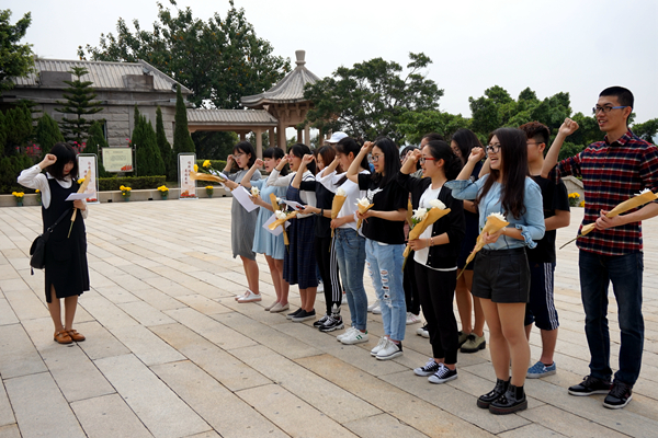 进入烈士陵园后,教育科学学院党员在革命烈士纪念碑前肃立。活动开始前,学生党员代表介绍了烈士陵园的相关背景,让大家了解到烈士陵园作为我市爱国主义教育基地、党史教育基地的重要性。在发表感言时,她不仅缅怀革命先烈丰功伟绩,也表达了作为党员要继承先烈遗志、发扬革命传统、为率先基本实现现代化团结奋斗的信心。扫墓仪式正式开始后,全体肃立,奏唱国歌。在庄严的国歌过后,领誓人带领在场党员宣誓入党誓词,并向烈士致辞,表达了他们身为时代新青年不忘过去、要担负起振兴中华的重任的决心。全体党员为烈士献上鲜花,并向烈士鞠躬致敬,在革命烈士纪念碑前默哀一分钟后扫墓活动结束。