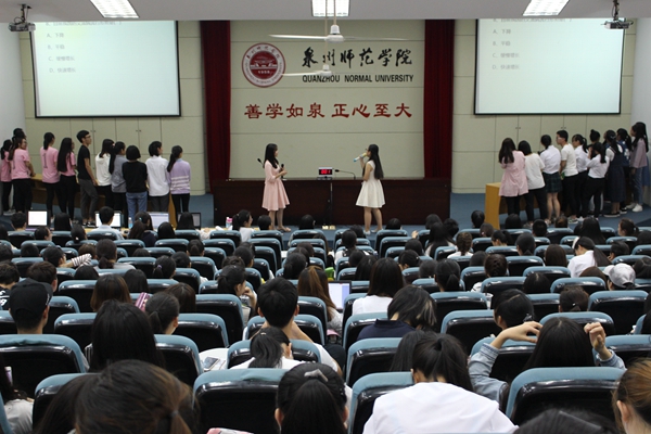 本次竞答针对全院学生,涉及女性健康和防止艾滋病相关知识、移动通信安全、突发性自然灾害、交通安全、急救常识、寝室安全及火灾、财产安全、传染病预防等多方面内容,比赛分为必答题、抢答题和风险题三个环节。经过第一轮案例分析题与必答题的比拼,分数位于前四名的队伍进入第二轮。二轮比赛中,各支队伍竞争激烈,比赛进入白热化阶段,各队抢答激烈,回答问题时快速准确,充分体现出选手们在比赛前准备的充足。其中,15级特殊教育专业(1)班队伍虽在第二轮比赛中表现并不突出,但在第三轮风险题中成功抢答五题,逐渐将自身与其他队伍的分数差距拉大,她们精彩的表现赢得了观众的阵阵掌声,最终以124分的高分获得本次比赛的一等奖。