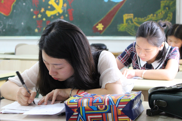 教科学院参赛选手在认真书写 (钟玉英 摄)