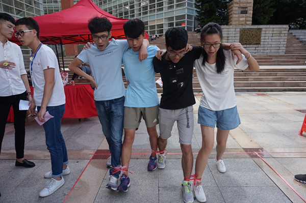 教育科学学院参赛选手在“四人五足”环节中比拼