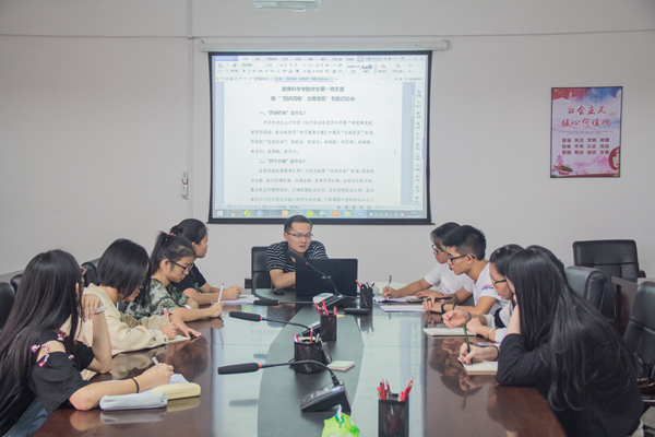 本报讯 (记者 沈逢庆)10月15日,教育科学学院学生第一党支部针对做“‘四讲四有’合格党员”这个专题开展了一次具有深刻教育意义的讨论会,学生第一党支部书记陈欣老师作为主讲人,党务助理王雪苗、张楠以及多名预备党员参加此次讨论会。
