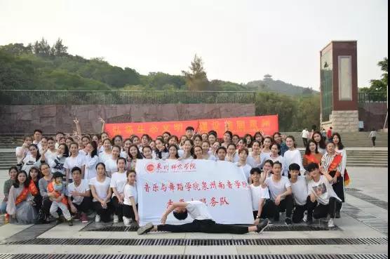 2018年4月2日下午,泉州师院音乐与舞蹈学院的青年志愿者在泉州市森林公园开展了一场别开生面的“弘扬生态文明·建设美丽泉州” 公益快闪活动。活动中,志愿者们用快闪表演的欢乐形式感染身边的市民并带动大家一同关注“泉师音舞”微信公众号平台推送的环保公益宣传信息,通过市民们的微信朋友圈转发环保宣言,呼吁大家用自己的行动传播环保理念,一起保护生态环境,努力构建“创新、智造、海丝、美丽、幸福”的泉州。