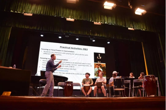 8日下午,分别进行两场学术讲座。第一场是来自David G. Hebert教授题为《音乐即兴表演的重要性及其学习方法》的讲座。他以其一种轻松、愉悦的互动方式,向学院师生阐明即兴表演对于音乐家发展、音乐灵感的产生、音乐领域合作的多元化等方面的重要性,提出节奏变化、音程/音色变化、音高转换、音乐休止长短的变化等为即兴表演的关键点,并与同学们进行现场实践演示。指导学生如何即兴表演与实践训练,展现其独特的教学方式与个人魅力。