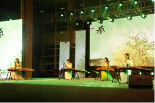 由我院研究生李超慧、陈雅琪、翁辛琳、黄诗颖四位同学带来的古筝合奏《四季未央》,用宫商角徵羽的优美筝乐,抒发了对大自然的热爱之情,沁人心脾。为她们的优秀打call!!