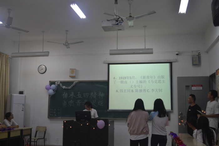 为弘扬五四精神,继承革命先辈吃苦耐劳和坚忍不拔的奋斗精神。5月4日晚七时许,我院2018级双语1班和2班、商务英语专业3班分别于外文楼308、311、310教室举办以“弘扬五四精神 成就青春中国”为主题的班团日活动。