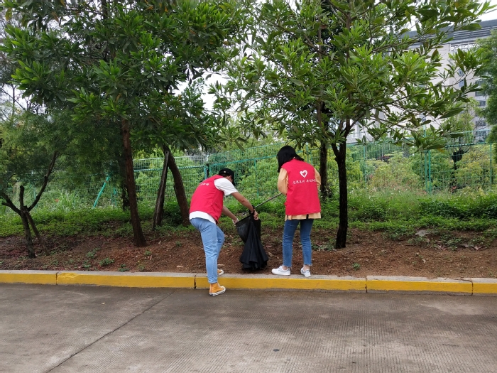 活动伊始,志愿者们统一穿上青年志愿者服。随后,他们听从组长的安排,两两一组,有序分工。接着,志愿者们便开始在划分的区域内进行清理。虽然天空下着绵绵细雨,但志愿者们仍积极投身本次活动,热情丝毫不减。无论是在C区外围还是在宿舍楼下的草丛间,都能够看见志愿者们认真拾捡垃圾的身影。短短一个小时,草丛里的纸屑,路边的烟头,水沟里的垃圾都被志愿者们放入垃圾袋中。看着被自己清理干净的区域,志愿者们都露出了满意的笑容。