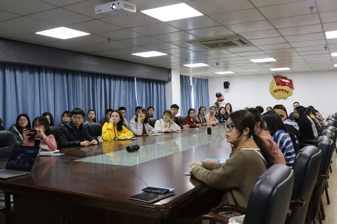 双方在会议室开展交流会,在参观了校会的宣传片后,福师大各学生干部分享了自己所属部门的工作内容和工作经验,两校学生展开了热烈的讨论。