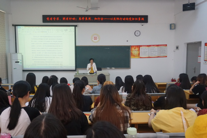 开班式上,院党委书记李丽雪讲话中强调各位学员要端正入党动机,遵照入党程序,积极争取加入中国共产党,并提出三点要求:(一)进一步严格要求自己,自觉践行社会主义核心价值观,在广大同学中起模范带头作用;(二)当学风建设的先行者,实践中的践行者,吸取知识、练就过硬本领;(三)坚定理想信念,努力成为素质全面的创新型人才。接着,陈奕希老师介绍了入党积极分子培训班的基本情况与宗旨,宣读了本次培训的教学安排、管理规定等,要求大家遵守管理规定,顺利完成培训。随后,由丽雪书记为入党积极分子上了题为《党有号召、团有行动、真学真用、知行合一》的第一堂党课,从青年与党的关系、青年要在理想信念的塑造和实践中成长成才、入党的基本条件、端正入党动机、遵照入党程序以及入党常用文书的规范写法这六个方面与同学们进行探讨,并号召在座的全体同学以实际行动加入党组织。