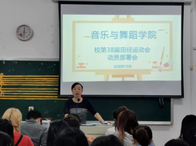 为了迎接即将到来的校第38届田径运动会, 10月29日,我院在艺术楼C309召开了校第38届田径运动会部署会。音乐与舞蹈学院党委副书记兼纪委书记胡秋娇、学工办主任、团委书记刘晓莹、辅导员李小国、朱思、运动员代表和学生主干出席本次会议。