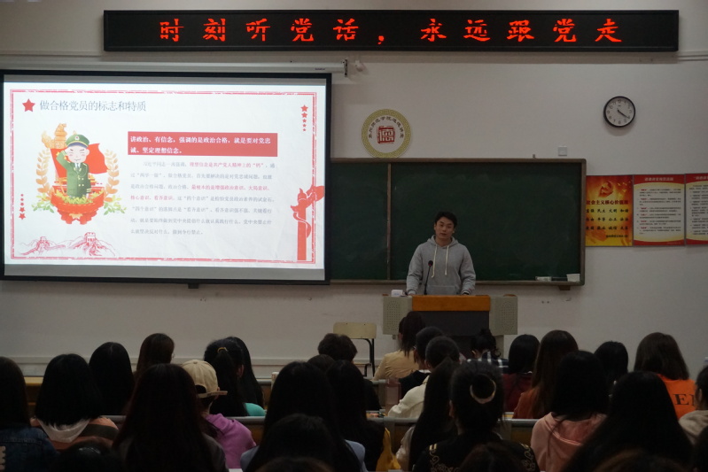 首先陈杰松老师在此次开班大会中强调,各位学员要端正入党动机,端正入党态度,严格遵照入党规章制度,积极主动争取加入中国共产党。接着,陈老师介绍了本次培训的教学安排、管理规定、入党要求等,希望入党积极分子严格按照培训宗旨,遵守管理规定,顺利完成培训。陈老师联系时事热点,从青年与党的关系、青年要在理想信念的塑造和实践中成长成才、入党的基本条件、端正入党动机与遵照入党程序等各个方面与同学们进行深刻探讨。最后,陈老师号召在座的全体同学还要进一步坚持全面发展,学好党的理论知识和专业知识;要坚持理论联系实际,投身实践,增强历史责任感和使命感,肩负历史使命;牢记党的宗旨,发挥模范带头作用和示范作用。