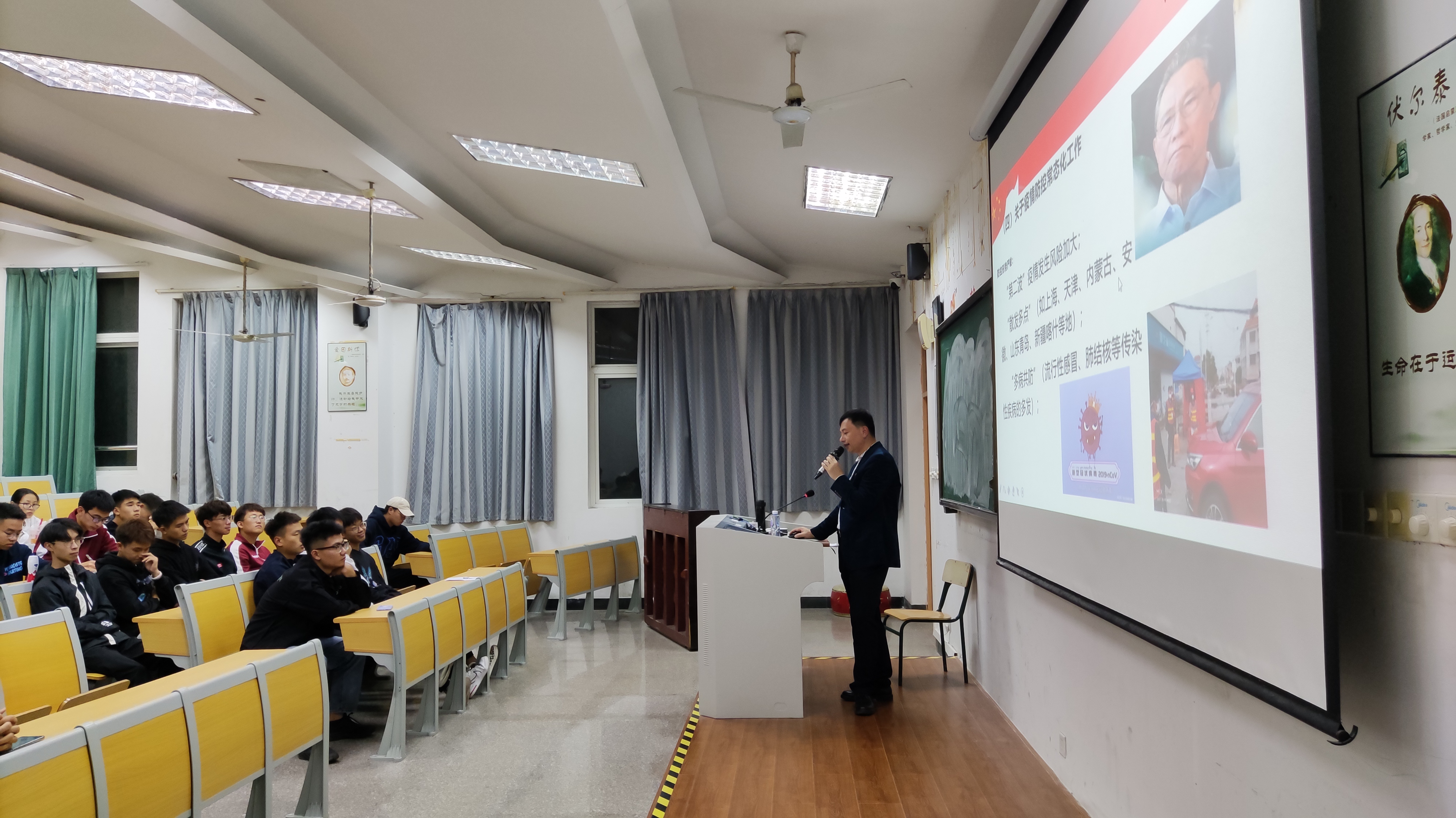 11月29日晚19:00,在千墅108教室体育学院党委副书记、纪委书记李遵义给全体学生干部上了题为《以学促行,贯彻落实党的十九届五中全会精神,推动学院学生管理水平工作再上新台阶》的专题思想政治课,会议由学工办主任、团委书记陈美婧老师主持。