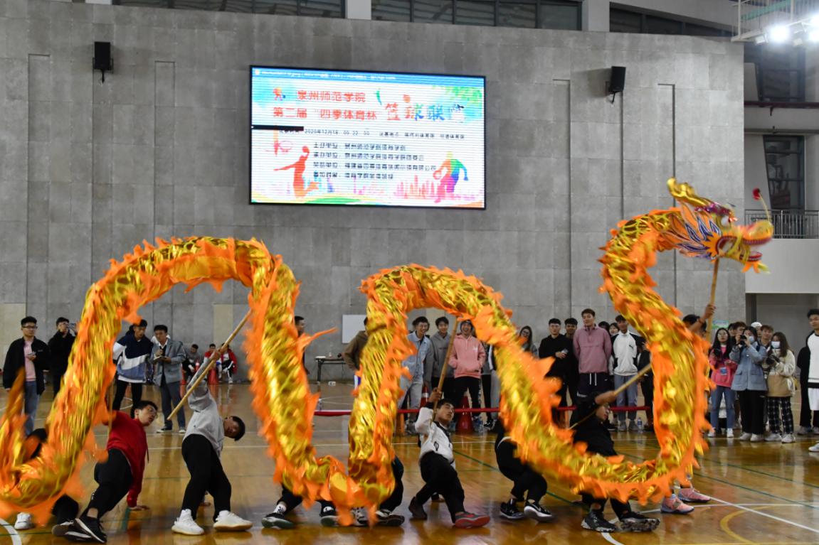 开幕式上进行了精彩的舞龙舞狮表演,为各个参赛队伍加油助威,营造了活跃的赛前气氛。随后,许月云院长致开幕辞。她指出:近年来,我院全面贯彻党的教育方针,坚持学生的全面发展,在注重培养优良学风的同时开展各项体育交流活动,增强学生体质,对提高学生的整体素质,推动学院建设都有十分重要的意义,并预祝本届篮球联赛圆满成功。接着,裁判代表宣誓“公正执裁、文明裁决”,参赛学生代表宣誓“友谊第一、比赛第二”,比赛将秉承公平互助的理念进行。开幕仪式后,进行了首场比赛,卢进民书记为第一场比赛开球。