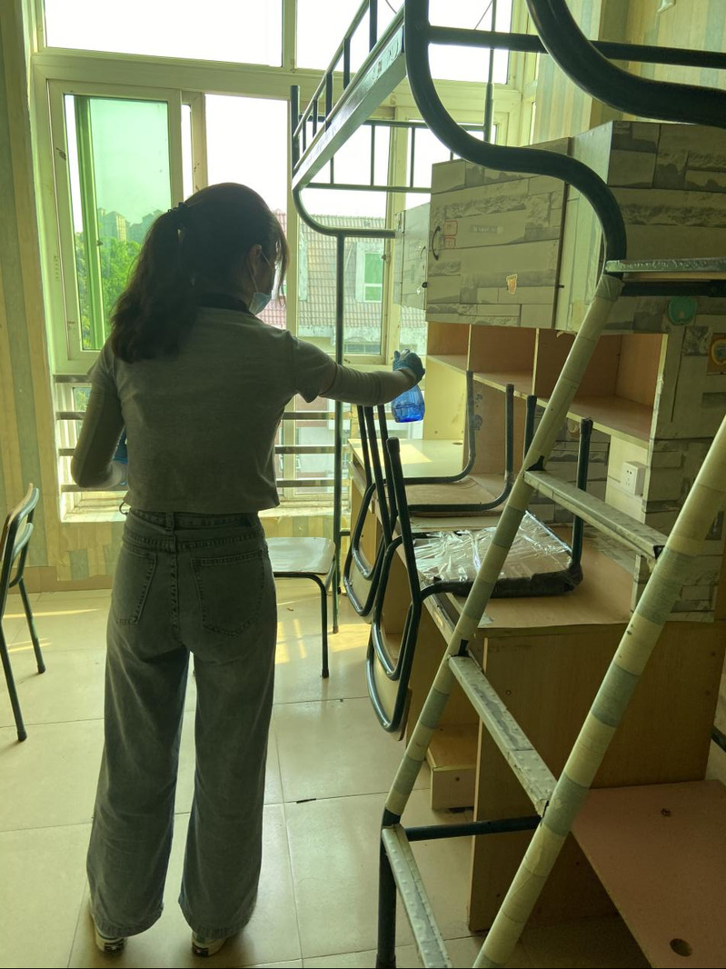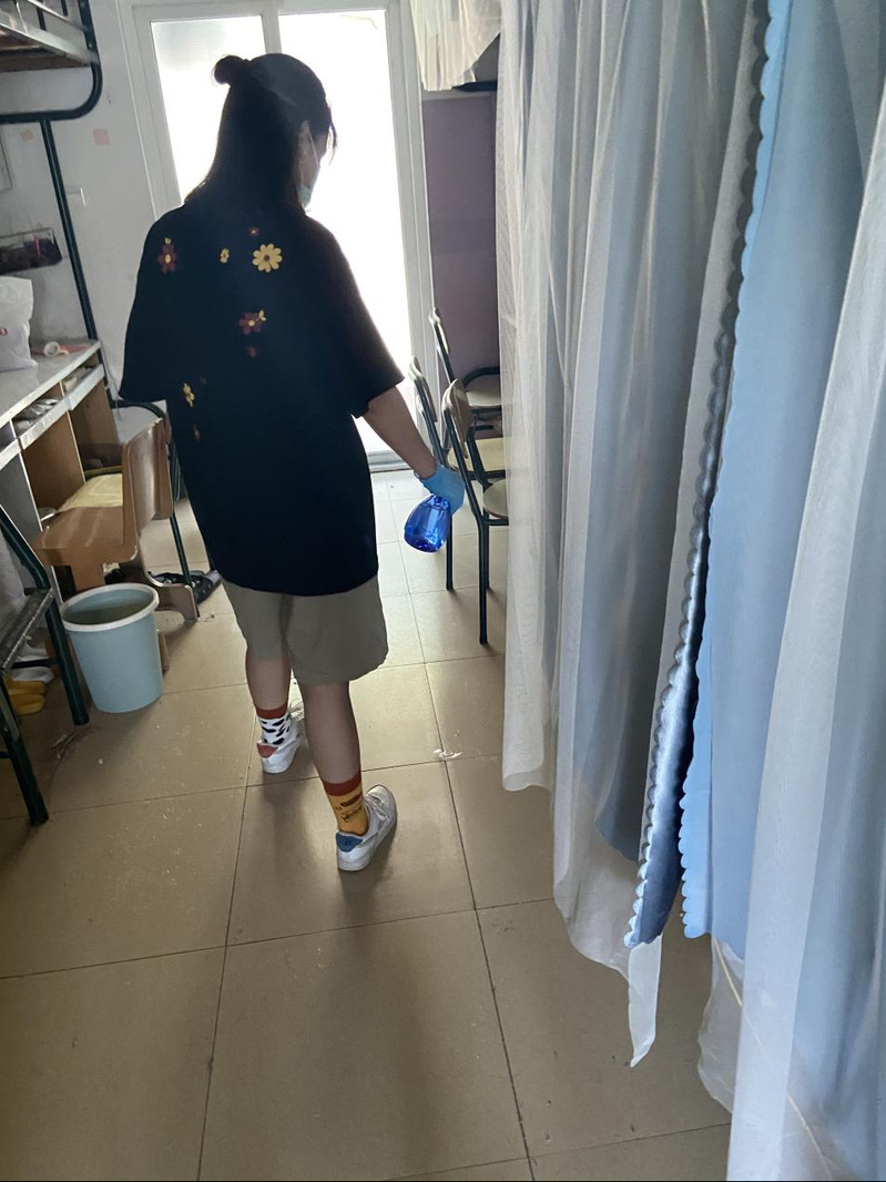 志愿者们佩戴好口罩、手套后,对每一间宿舍地板、阳台、窗户、卫生间等角落进行喷洒消毒和开窗通风。学院领导老师带领学生干部对学生宿舍一一进行安全隐患排查。此次宿舍通风消毒及安全隐患大排查的顺利完成,有效地阻止了细菌的传播,保障了同学们居住环境的安全,为我院学生营造了健康的学习生活环境。