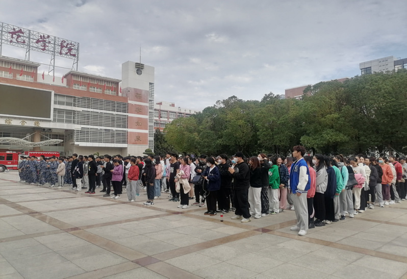 为进一步推动全体师生持续关注消防、学习消防、参与消防,提升广大师生的自防自救能力,11月15日下午3点,我校保卫处联合丰泽区消防大队在荣茂楼广场组织开展2021年度新生消防灭火演练,音乐与舞蹈学院全体新生参加本次演练活动。