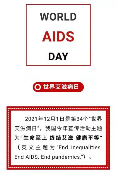 2021年12月1日是第三十四个世界艾滋病日,泉师小青同将于11月26日(周五)上午9:00中山广场,开展以“生命至上,终结艾滋,健康平等”为主题的防艾宣传活动。