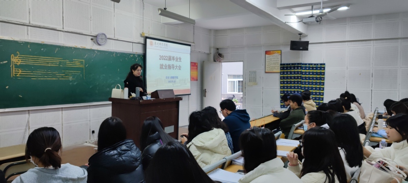 2022年1月4日,音乐与舞蹈学院在E101教室召开2022届毕生就业工作指导会。辅导员张甲玉、李祖阳及全体2022届毕业生参加本次大会,会议由院学工办主任刘晓莹主持。
