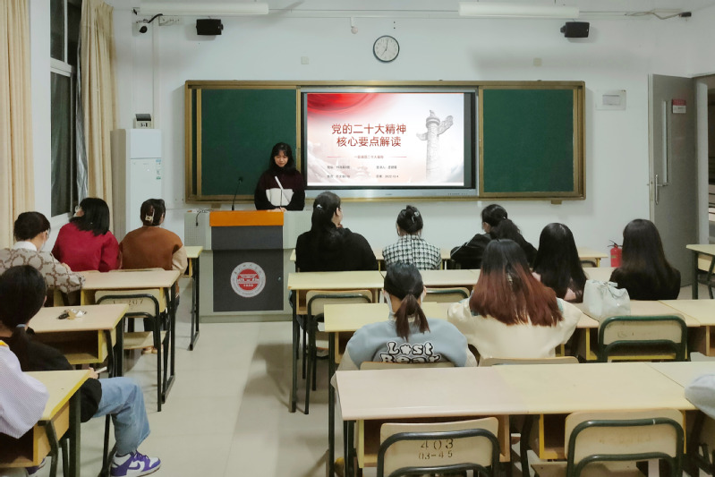 成立由32名学生主干组成的学习贯彻党的二十大精神学生宣讲团,围绕党的二十大精神、《中国共产党章程》等8个专题,2022年10月至12月面向29个班级开展232场次的集中宣讲,用师生喜闻乐见的语言和形式把党的二十大精神讲清讲透。以毛泽东选集读书社、“校青马班”等社团成员为骨干,面向学院全体学生深入开展巡讲、网络巡礼活动,引导广大师生深入学习宣传贯彻党的二十大精神。
