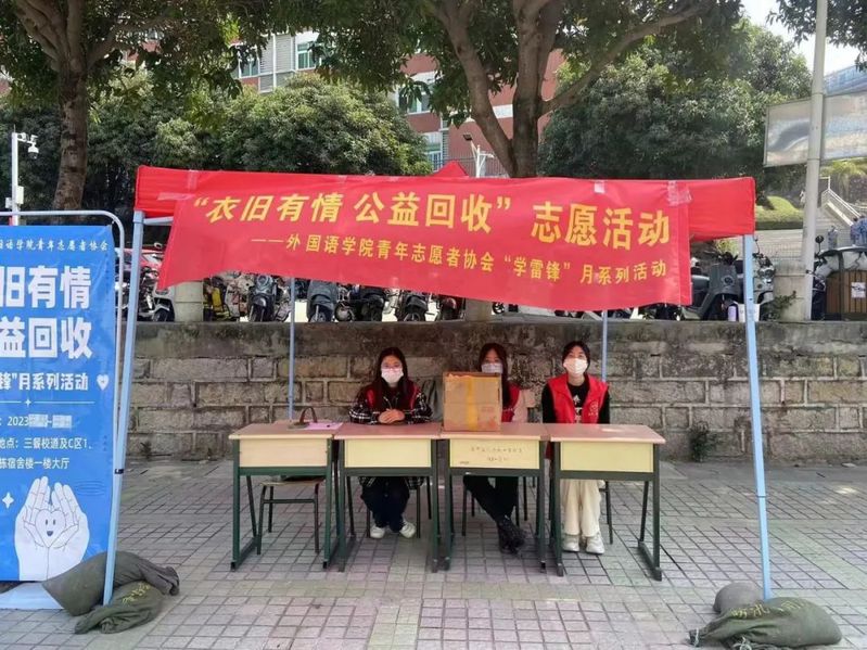2023年3月4日至6日,外国语学院青年志愿者协会在三餐廊道以及C区1、2、3栋宿舍楼一楼大厅处设点举行捐衣活动,志愿者们坚守岗位,同学们捐赠旧衣,献出爱心。此项活动正在持续进行中,希望更多同学捐赠旧衣,加入到学习雷锋精神的行列中来。