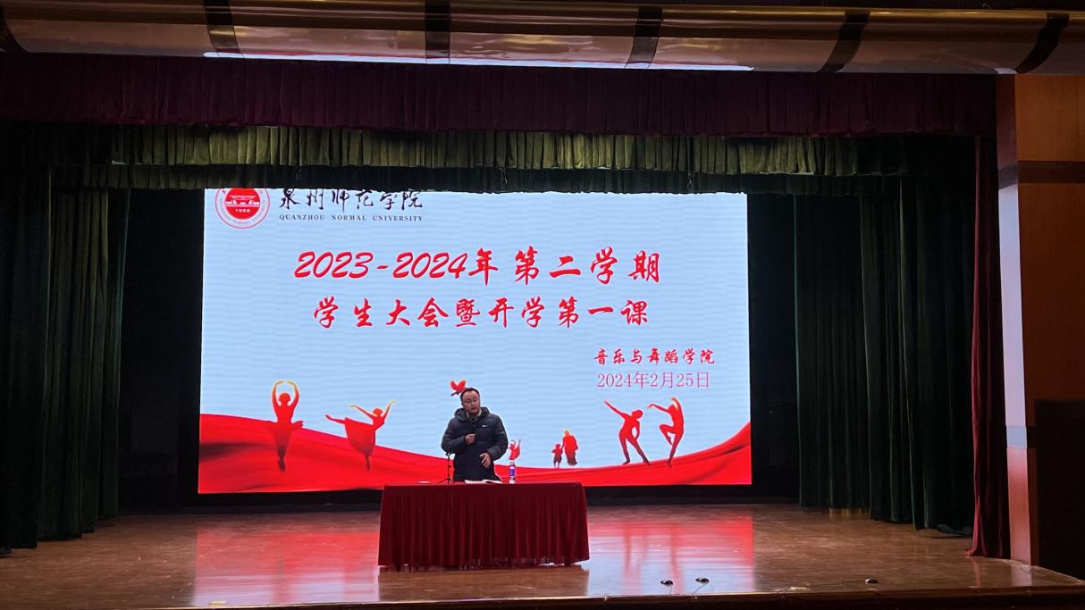 为更好地开展新学期的工作,2月25日晚,音乐与舞蹈学院学工办召开期初学生大会暨“开学第一课”主题班会。本次大会由院学工办副主任张甲玉主持,辅导员李祖阳、吴亦伦、赖鸿出席,2021级、2022级、2023级全体学生参加。