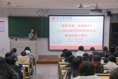为扎实开展学生学业指导、教育引导、服务管理工作,3月10日,化工与材料学院在荣茂楼205教室举办“榜样引领、砥砺前行”——2024届优秀师范毕业生教招经验分享会,邀请林佳宇、邱叶妍、陈慧琪等3名教师编制已上岸的优秀师范毕业生进行分享,21级化学(师范)专业学生以及其他年级化学(师范)专业同学参加。