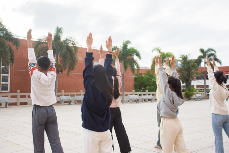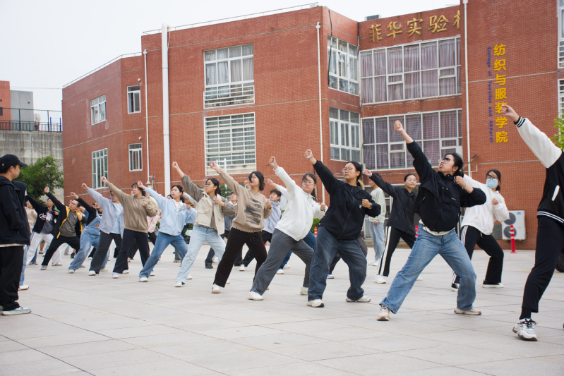 秋风凛冽,同学们与疲惫困意作斗争,是每天清晨里训练的身影,是每天夜晚时跳动的身姿。清晨的阳光洒在同学们身上,这一刻,邱天生实验楼前的这块空地也变得更加生动与饱满。随着音乐的响起,音符在同学们的耳里跳动,他们跟随着音乐跳动、旋转、伸臂、蹬腿,脚踏着有力的节拍,不断重复,坚持不懈,只为将最好的一面呈现出来,展示我院学子积极进取、乐观向上的良好面貌,形成校园里一道独特而亮丽的风景线。