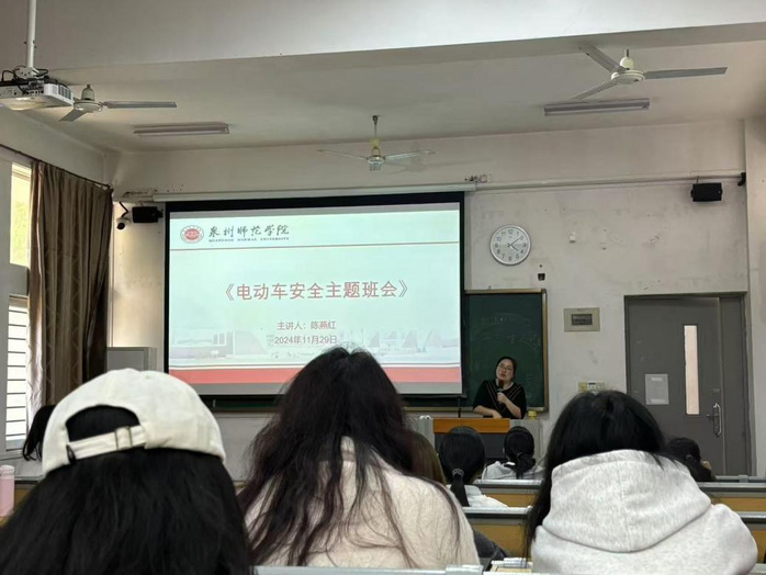 近日,我院围绕电动车安全教育召开了主题班会。会上,各辅导员向同学们传达了“关于开展校园电动自行车专项整治工作的通知”的内容,强调了2025届毕业生本学期须尽快将电动车驶离校园的要求,并对校内存在的无(假)牌、无(假)校园通行码,以及超标、违规改装等电动自行车进行了专项整治宣传,要求学生自行处理违规车辆。