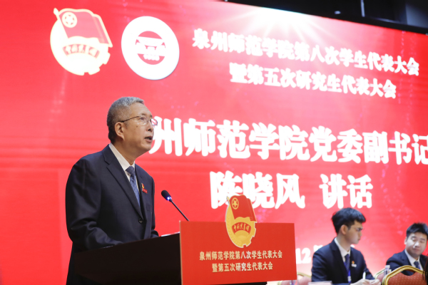 12月15日上午,我校第八次学生代表大会暨第五次研究生代表大会在特教大楼第一学术报告厅举行。校党委副书记陈晓风,共青团泉州市委副书记何培旭及办公室主任、学少部部长陈为藩,校党委组织部、宣传部、教师工作部、学工部以及教务处、研究生处、保卫部、团委会等部门负责人,各二级学院(系)团委负责人,正式代表和特邀代表等参加开幕式。