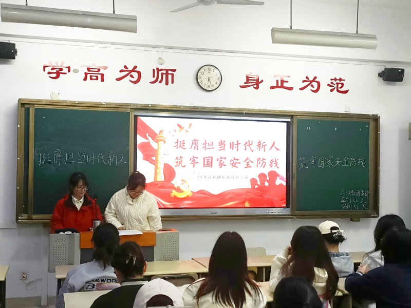 为深化学生的国家安全观念,强化责任担当意识,文学与传播学院于4月13日在俊秀东楼举办了以“挺膺担当时代新人,筑牢国家安全防线”为主题的校级团日活动。