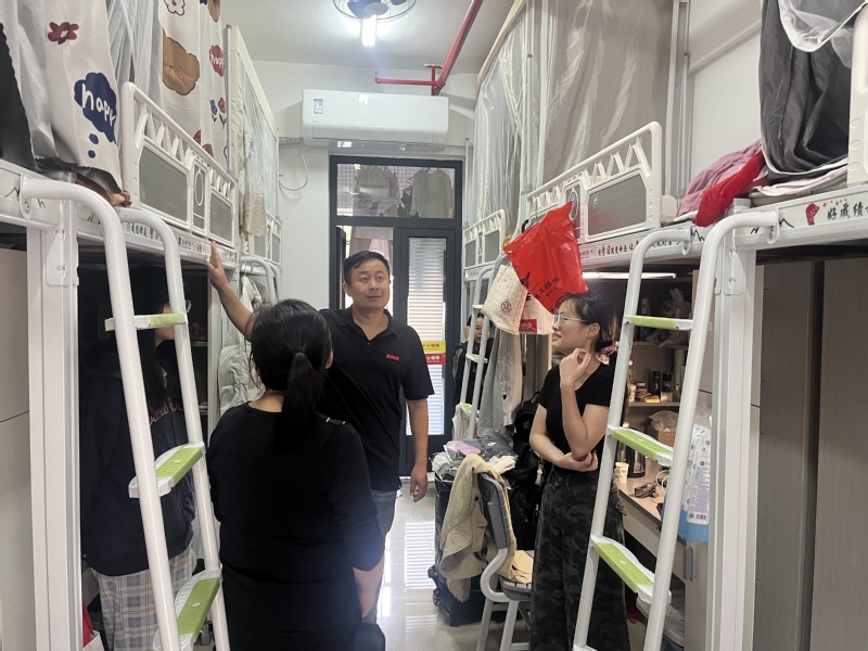 院领导亲切地与学生交流,详细了解学生宿舍设施情况和同学们的生活情况。林建全书记叮嘱同学们,在宿舍一定要注意消防和用电安全,要强化公共安全意识。对于毕业班同学,院领导仔细询问工作落实情况,提醒同学们毕业季需警惕钓鱼网站诈骗,在保证学习质量的同时,还要注意劳逸结合,加强体育锻炼。