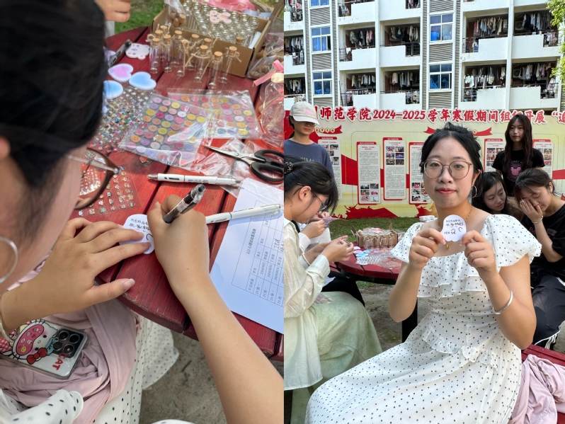 活动尾声的“心语漂流瓶”环节为同学们提供了匿名倾诉的树洞。大家在纸条上写下近期的心事、困惑或对未来的期许,投入“漂流瓶”中,随后随机抽取他人的纸条并写下暖心回复。小小的瓶子承载着真诚的话语,在传递中温暖着每一颗心灵,让同学们在分享与倾听中获得情感支持。